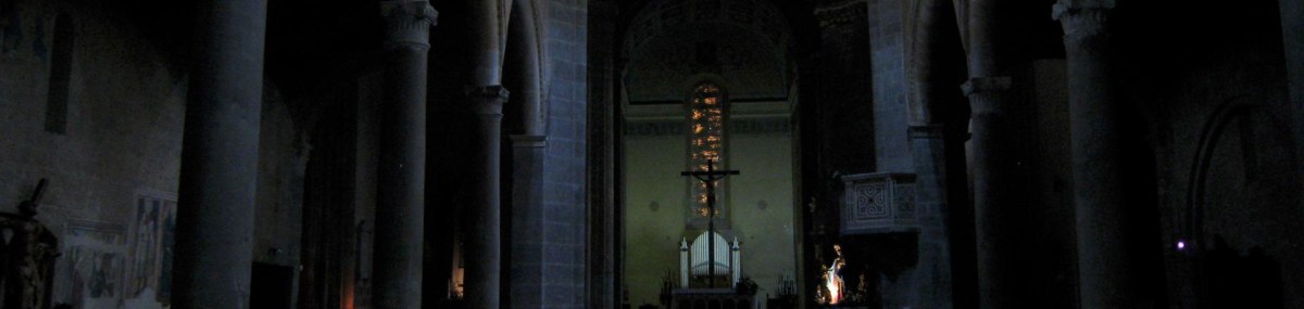 As I’m walking around, I follow a map which outlines a path that walks past most of the churches in Orvieto, and I enjoy spending a little while reflecting or praying in each. While I’m doing this, a storm rolls in. I am sitting in silence inside a massive, but completely empty, save myself and the flickering light of a few candles, church, when the echoes of thunder start reverberating through the place. It is wonderful and awesome. I continue my wandering, now with a bit of protection provided by my rain coat, but not enough as the wind and rain pick up quite a bit and drench my hat and pants. I make it to the edge of the city-on-a-hill, and get to enjoy watching the rain pour down on the countryside below.